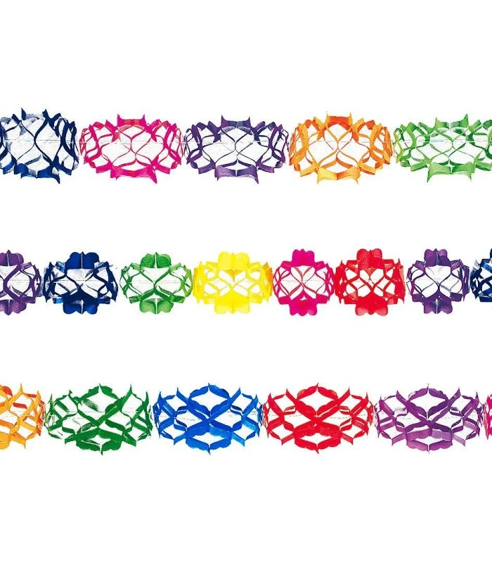 Un Set di 3 festoni lunghi mt. 6, in carta colorata, di diversi modelli assortiti, ideale per decorare le tue feste più belle.