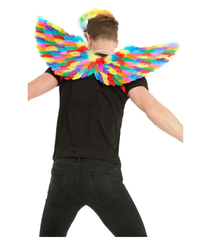 ALI IN PIUME RAINBOW ADATTE PER TRAVESTIMENTI DI CARNEVALE E PER FESTE A TEMA MULTICOLOR .