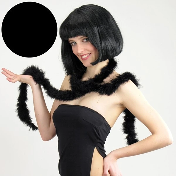 Un boa nero che arricchisce il decollete e lo impreziosisce con un gusto sensuale ed elegante. Un articolo che puo’ anche essere indossato come completamento di un costume di carnevale.