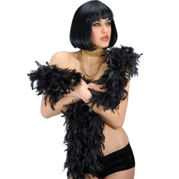 Boa di piume nero, un articolo da indossare in occasione di una festa carnevale o per una serata di festa in cui sia d’obbligo per un abbigliamento stravagante e sexy.
