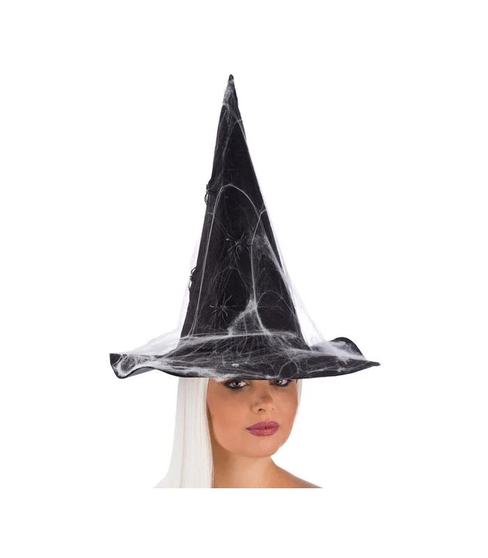 Cappello Strega nero con ragnatela e ragni . Non può mancare ad una vera strega la notte di Halloween