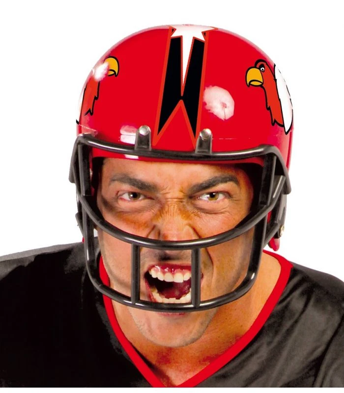 CASCHETTO DA FOOTBALL AMERICANO ROSSO , QUESTO CASCO DA FOOTBALL IN PLASTICA RIGIDA è DISPONIBILE IN TAGLIA UNICA DA ADULTO , ADATTO PER TRAVESTIMENTI DA GIOCATORE DI FOOTBALL E PER FESTE A TEMA AMERICA ..