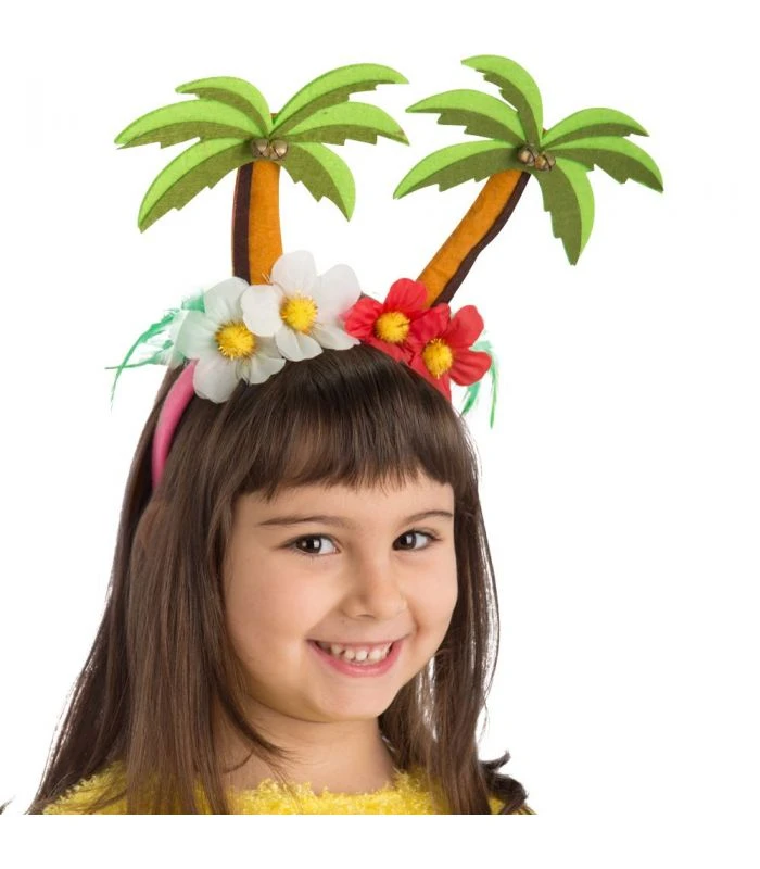 Cerchietto con palme e fiori, un accessorio colorato e particolare , ideale per rifinire in maniera originale e stravagante la tua festa hawaiana o party estivo sulla spiaggia .Un gadget da poter regalare tranquillamente ai tuoi invitati in piscina o intorno ad un fuoco in spiaggia