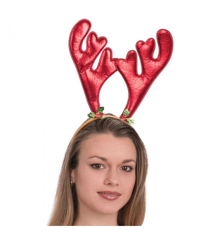 Cerchietto con corna da renna rosse in lurex, divertente e colorato per dare luce e allegria alle tue feste con parenti e amici . Ottimo gadget da regalare ai tuoi ospiti in occasione delle feste di Natale