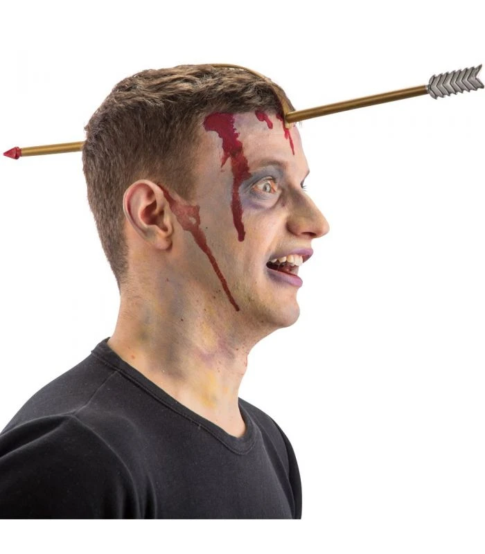 Cerchietto con freccia . Una simulazione stupenda di una freccia che trapassa la testa da parte a parte . Di facile utilizzo grazie al cerchietto per la testa . Un accessorio che non può mancare in occasione di feste Horror ad Halloween e non solo …..