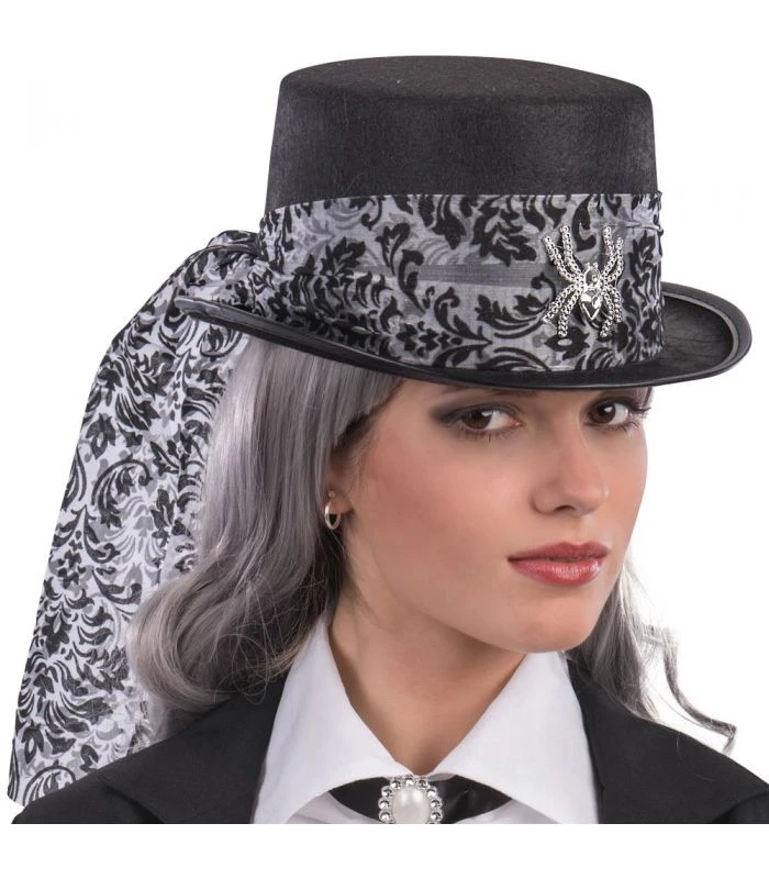 Tags: feltro nero cilindro ragno damascato voile