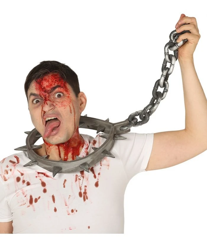 COLLARE CASTIGO CON CATENA LUNGHEZZA 80 CM . ACCESSORIO PERFETTO PER COMPLETARE IL PROPRIO TRAVESTIMENTO DI HALLOWEEN O I TRAVESTIMENTI A TEMA MEDIEVALE CON QUESTA ARMA DA PUNIZIONE DEL MEDIOEVO .. ARMA IN PLASTICA FACILE DA INDOSSARE E PER NULLA FASTIDIOSA
