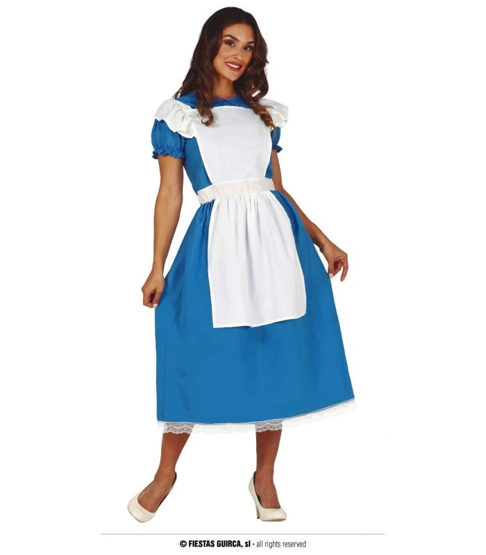 Costume alice nel paese delle meraviglie , fedele replica della protagonista del famoso cartone animato alice nel paese delle meraviglie , perfetto per travestimenti di carnevale e feste a tema cartoni animati e film , disponibile in taglia unica S/M