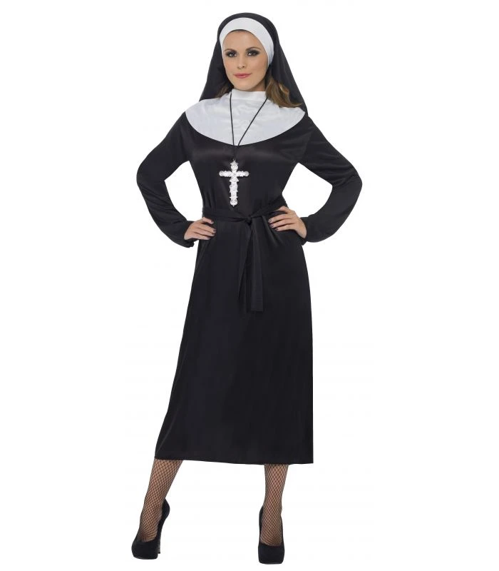 COSTUME DA SUORA TAGLIA L , ADATTO PER TRAVESTIMENTI DI CARNEVALE E PER FESTE A TEMA .. COSTUME COMPOSTO DALLA TONACA NERA E DAL COPRICAPO DA SUORA .. PERFETTO PER TRAVESTIMENTI DIVERTENTI ..