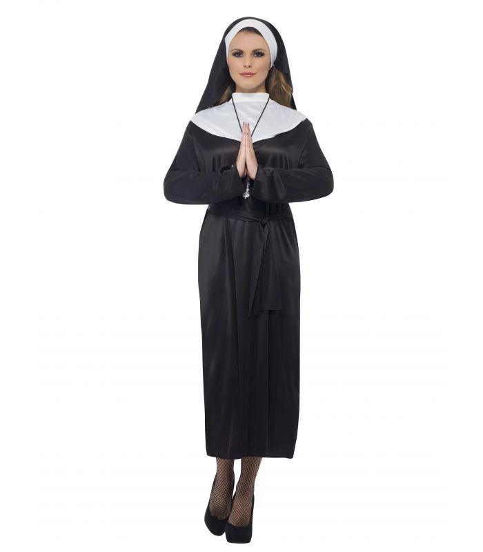 COSTUME SUORA TAGLIA M ADATTO PER TRAVESTIMENTI A TEMA E PER FESTE DI CARNEVALE .. COSTUME CHE COMPRENDE LA TUNICA NERA E IL COPRICAPO CLASSICO DA SUORA .. ADATTO PER FESTE DIVERTENTI E PER TRAVESTIMENTI SIMPATICI ..