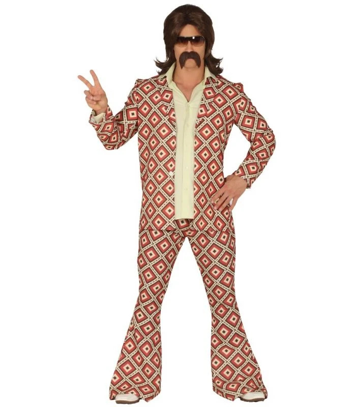 COSTUME UOMO ANNI 70 IN TAGLIA UNICA DA ADULTO , COSTUME CHE COMPRENDE GIACCA E PANTALONE CON FANTASIE ANNI 70′.. ADATTO PER FESTE DI CARNEVALE E PER TRAVESTIMENTI A TEMA DISCO ANNI 70 ..