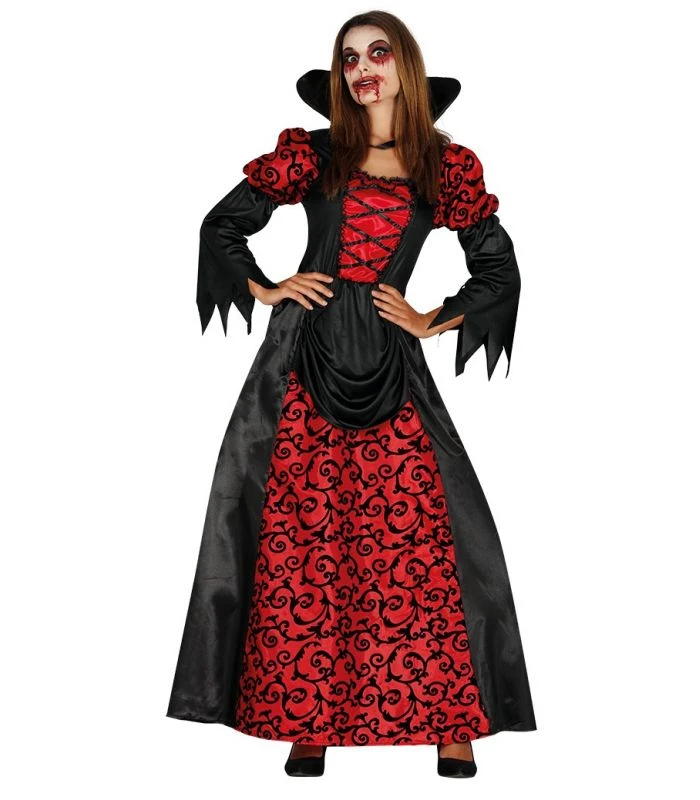 costume vampiressa adulta in taglia M da donna , costume perfetto per travestimenti di halloween e per feste a tema vampiri e mostri .
