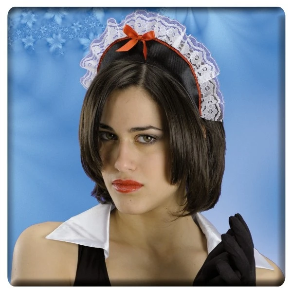 Crestina da cameriera in pizzo, per una mise d’effetto, sensuale e sexy. Un’affascinante cameriera e’ sempre nell’immaginario erotico maschile… se volete vestirne i panni per una festa in maschera, questa crestina e’ l’accessorio ideale!