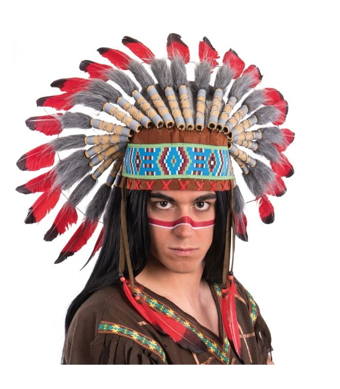 Diadema indiano con piume. Adattto per feste a tema, spettacoli di teatro e feste di Carnevale. Indossalo per guidare le truppe di una tribù indiana.