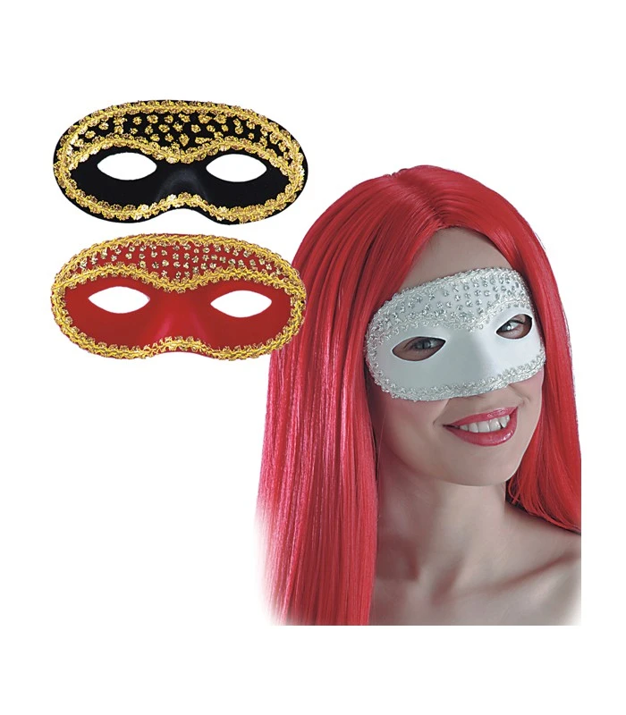 Tags: feste rossa colori assortiti scamosciato maschera nera neri passamaneria bianca guarnizioni domino carnevale con color colori assortiti