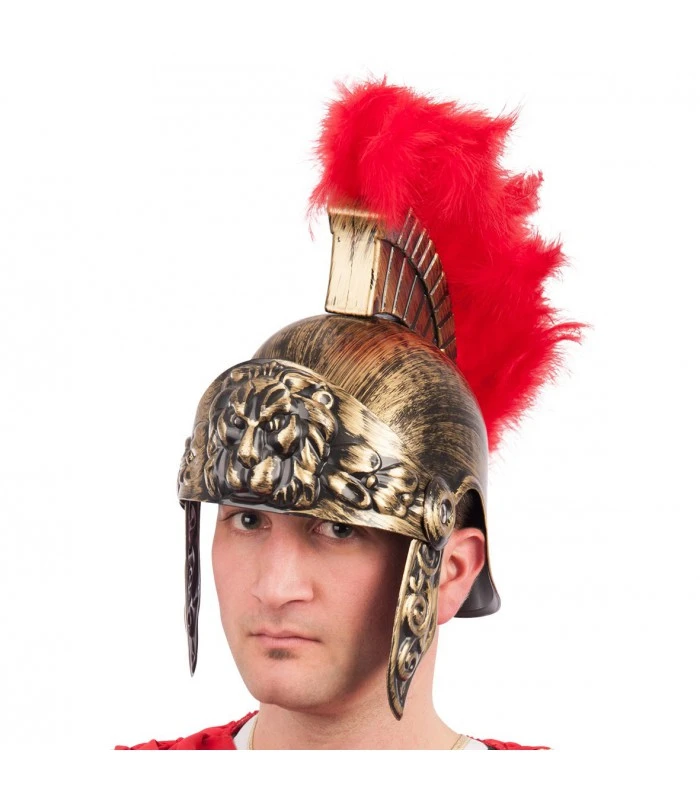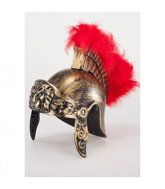 ELMO ROMANO LUSSO IN PLATICA RIGIDA ORO CON CRESTA ROSSA , ADATTO PER TRAVESTIMENTI DA ROMANO E GLADIATORE , FESTE A TEMA E COSTUMI DI CARNEVALE .. ACCESSORIO DA ABBINARE CON UN COSTUME DA ROMANO O DA GLADIATORE ..