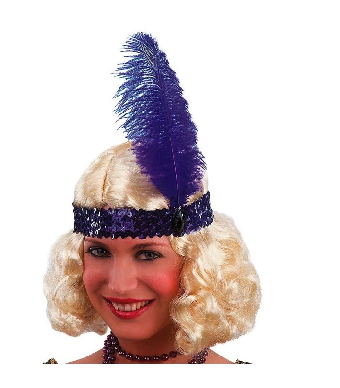 Fascia charleston viola in paillettes con piuma e diadema nero. Adatta per spettacoli teatrali e saggi. Ti renderà graziosa e splendida.