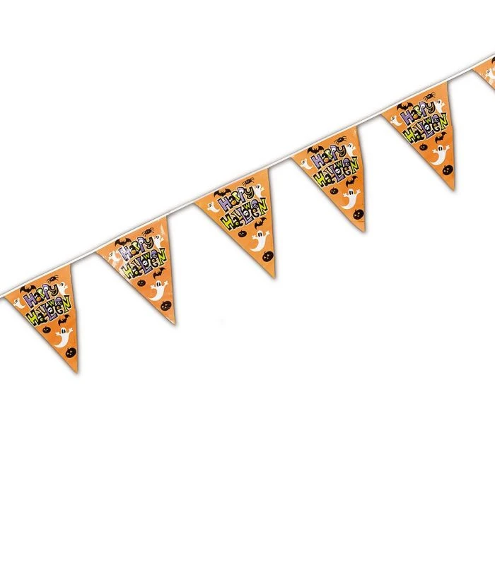Festone di bandierine colorate a tema Halloween, dimensioni cm. 360 x 30.