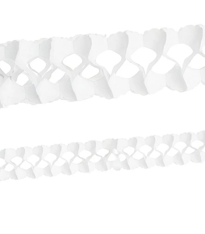 Festone di carta bianca, lungo mt. 4, il bianco non passa di moda mai, ideale per ogni festa e adatto ad addobbare sale per matrimoni o ricorrenze.