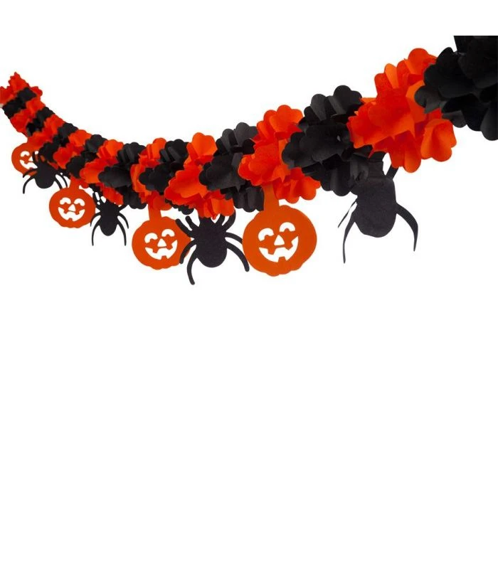 FESTONE IN CARTA CON ZUCCHETTE E RAGNI , ADATTO PER ALLESTIRE SALE PER FESTE DI HALLOWEEN E STANZE MOSTRUOSE .. LUNGO 300 CM PERFETTO PER ALLESTIMENTI MOSTRUOSI