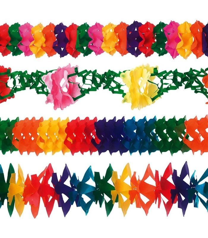 Festoni di lusso in carta colorata, lunghi mt. 4. Diversi modelli e colori assortiti, adatti per decorare le tue feste migliori.