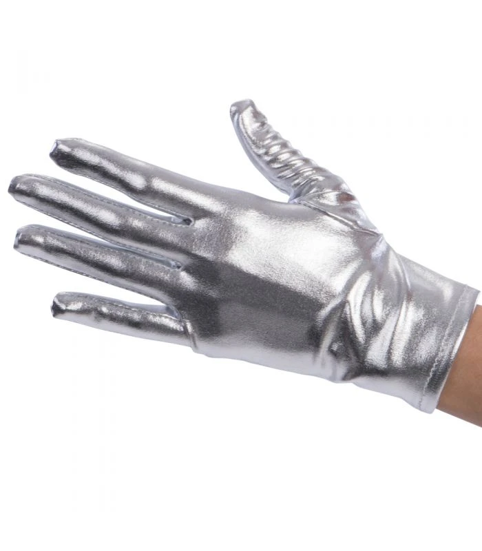 Guanti colore argento lucido. Un accessorio ideale per travestimenti, recite e spettacoli teatrali.