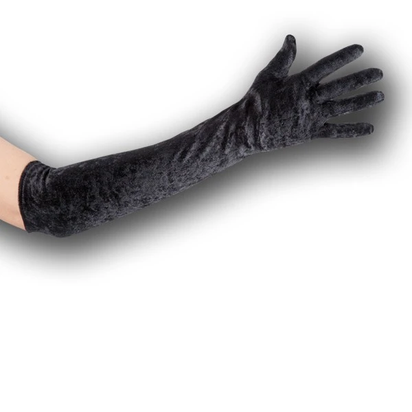 Guanti in ciniglia neri lunghi, per un abbigliamento fine, di classe, in occasione di festa a tema, o di travestimento di carnevale. Accessorio ideale anche per spettacoli teatrali o esibizioni da cabaret!