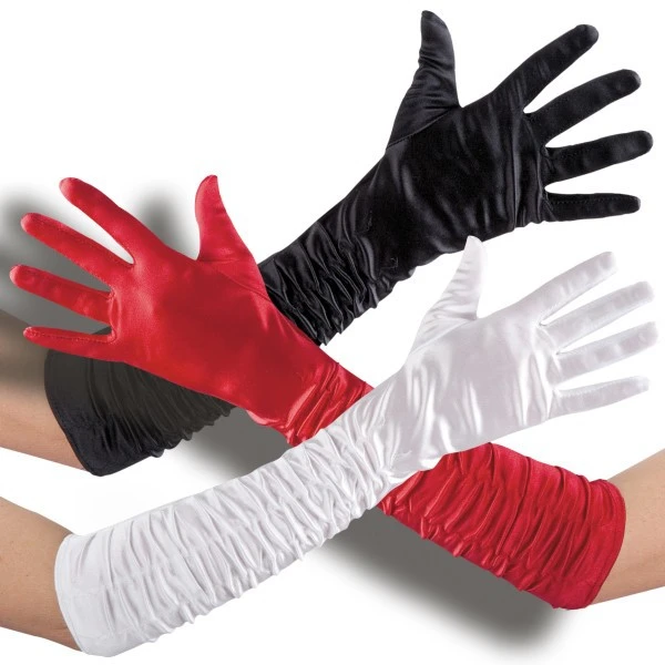 Articolo di carnevale, perfetto accessorio per completare il vostro travestimento per feste o esibizioni teatrali, o anche per rendere particolare la mise di una serata! Guanti in raso arricciati in rosso!