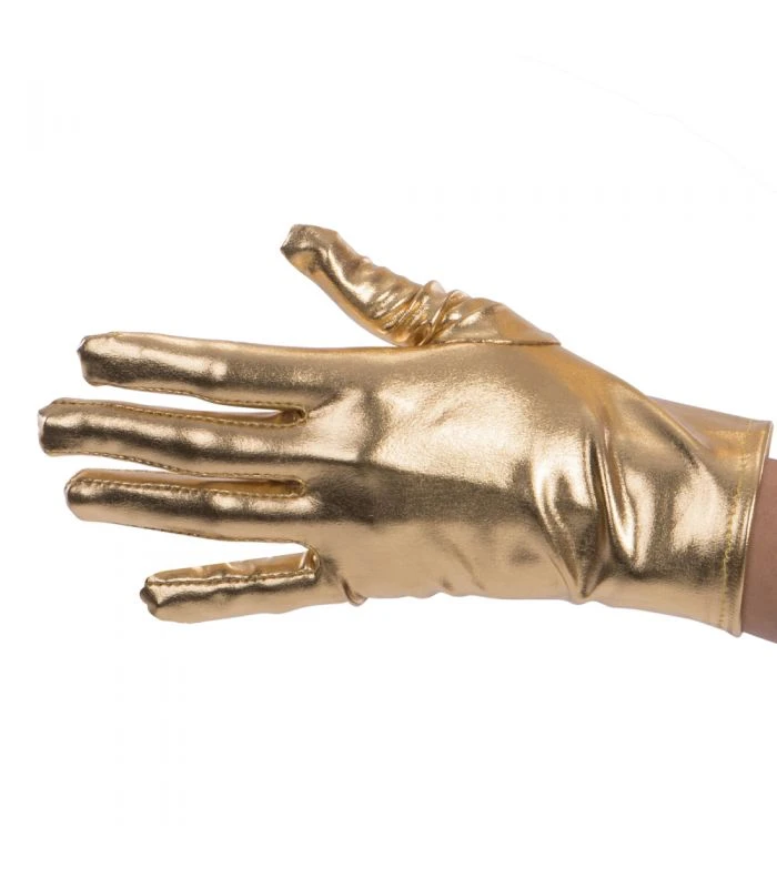 Guanti colore oro lucido, taglia unica. Un accessorio adatto per feste, recite e spettacoli teatrali.