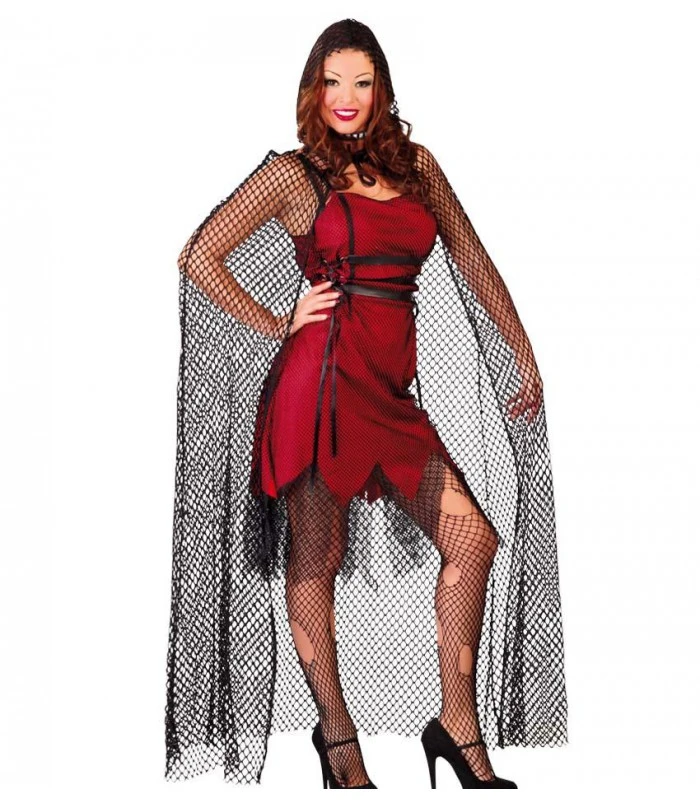Mantello a rete con cappuccio di colore nero , altezza 160 cm. .