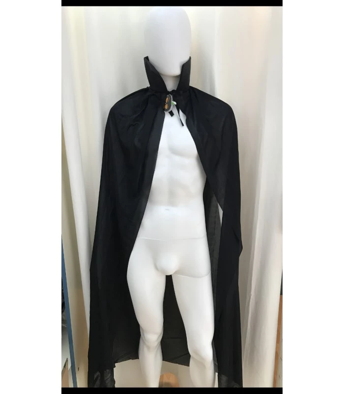 MANTELLO NERO CON COLLETTO 140CM , MANTELLO UTILE PER TRAVESTIMENTI DI CARNEVALE E PER TRAVESTIMENTI DI HALLOWEEN , ADATTO PER COSTUMI A TEMA E NON SOLO