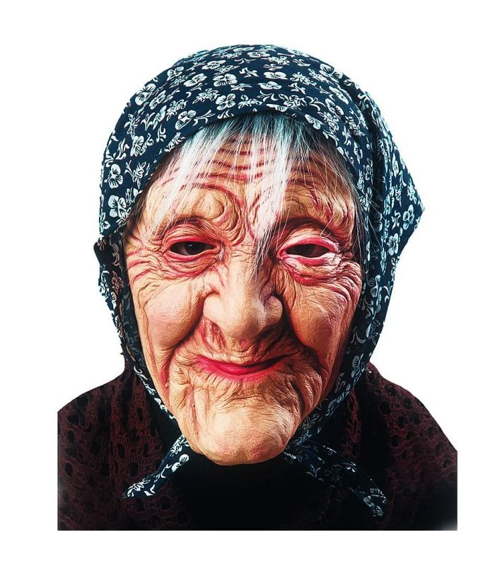 MASCHERA DA BEFANA IN LATTICE CON FAZZOLETTO IN TESTA , MASCHERA DA ADULTO IN TAGLIA UNICA ADATTA PER TRAVESTIMENTI DI HALLOWEEN E PER FESTE A TEMA STREGHE E BEFANE ..