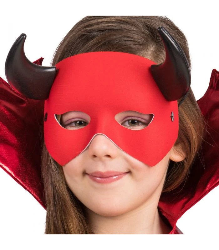 Maschera da diavolo rossa in tessuto con corna nere, elastico regolabile. Per feste in maschera, feste a tema e Halloween. Indossala e spaventa i tuoi amici.