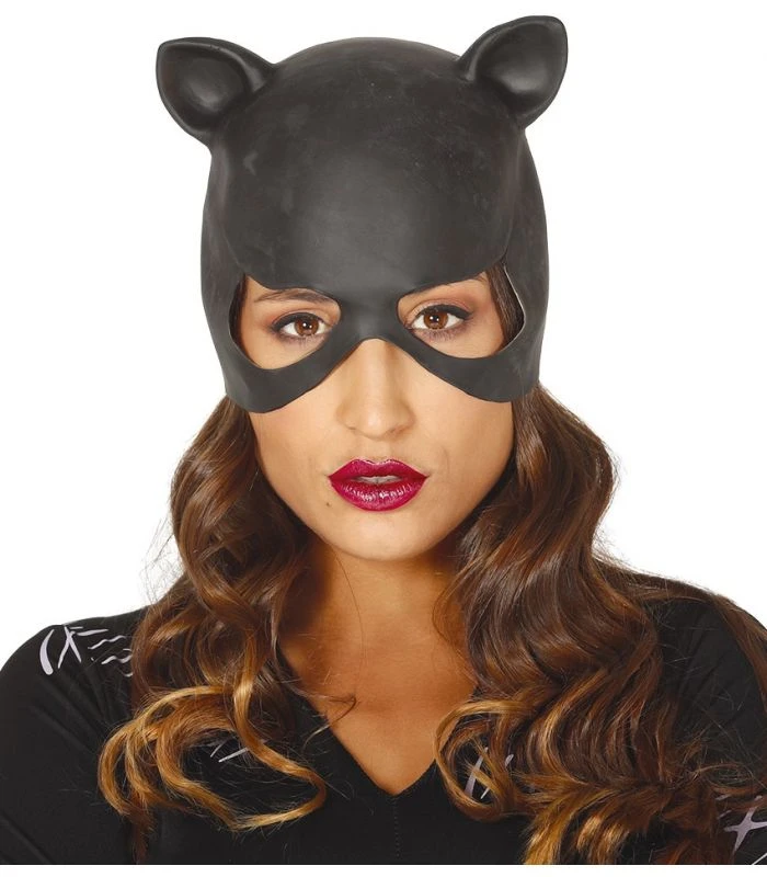 MASCHERA DA GATTA NERA IN VINILE , ADATTA PER TRAVESTIMENTI DI CATWOMAN E PER TRAVESTIMENTI GENERICI DI CARNEVALE E HALLOWEEN .. MASCHERA SEMPLICE DA INDOSSARE IN TAGLIA UNICA DA ADULTO .. PERFETTA PER FESTE A TEMA E NON SOLO ..