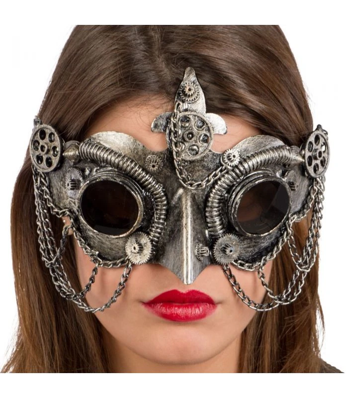 Tags: maschera argento plastica rigida catene steampunk becco