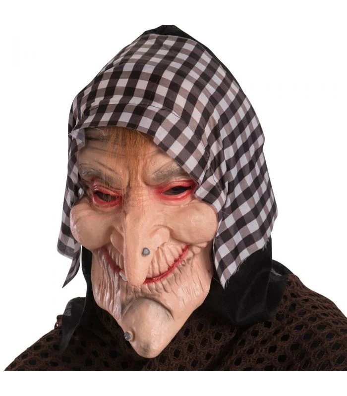 maschera in gomma con fazzoletto e capelli , ideale per intrerpretare streghe malvagie o per la semplice befana .. adatta per travestimenti di halloween e per feste di carnevale
