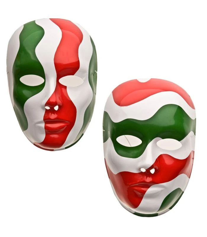 Maschere colorata con il tricolore italiano: verde, bianco e rosso. Ideale per tutte le occasioni di festa o di tifo sportivo per sostenere l’Italia .