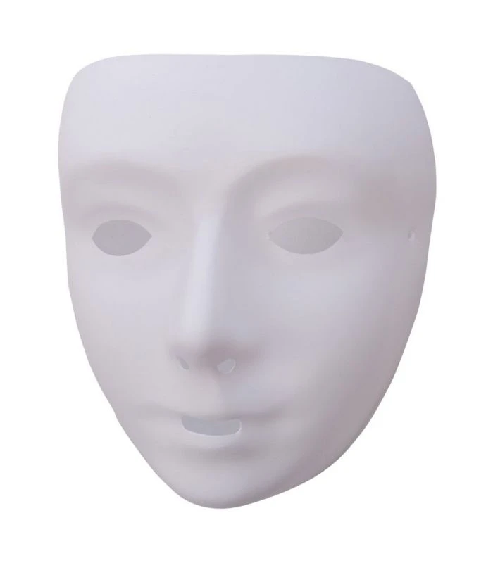 Maschera in plastica bianca. Semplice a anonima, si tratta di una maschera neutra.Articolo molto usato per esperienze didattiche . La misura è per un viso da ragazza . Corredata di elastico . Articolo molto economico
