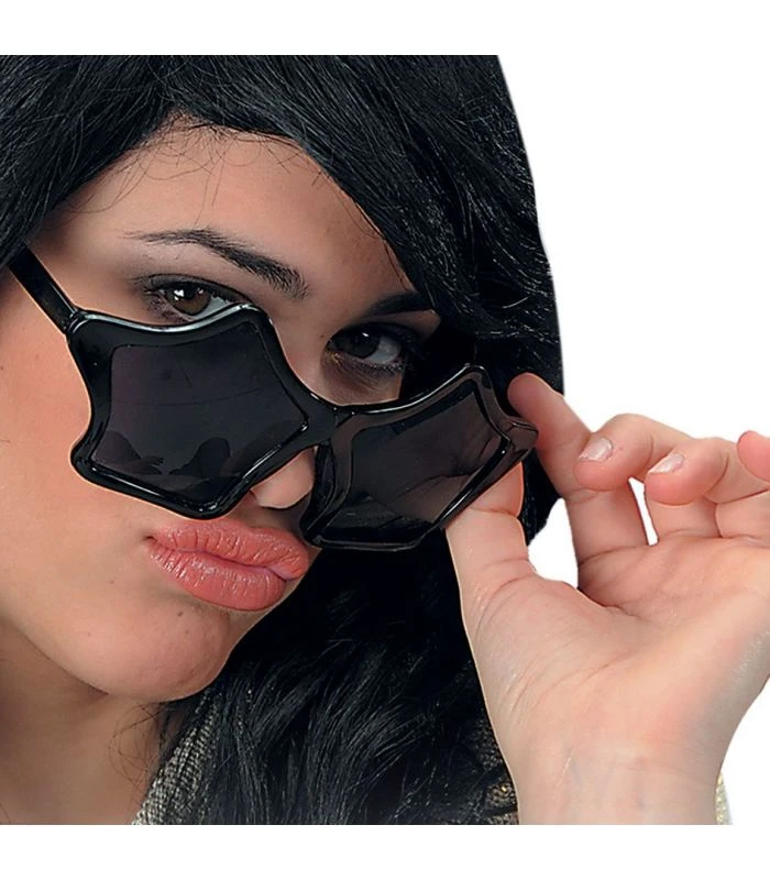Occhiali neri a forma di stella con lenti nere. Un articolo particolare che fa di ogni serata un evento, sia che ci si debba travestire, sia che ci si prepari semplicemente per una normale passeggiata in centro con le amiche.
