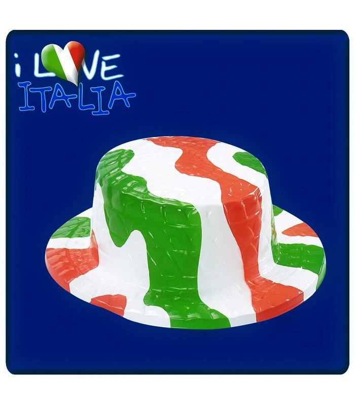 Paglietta in plastica, con i colori verde, bianco, e rosso della bandiera italiana, accessorio indispensabile per il tifo della Nazionale.