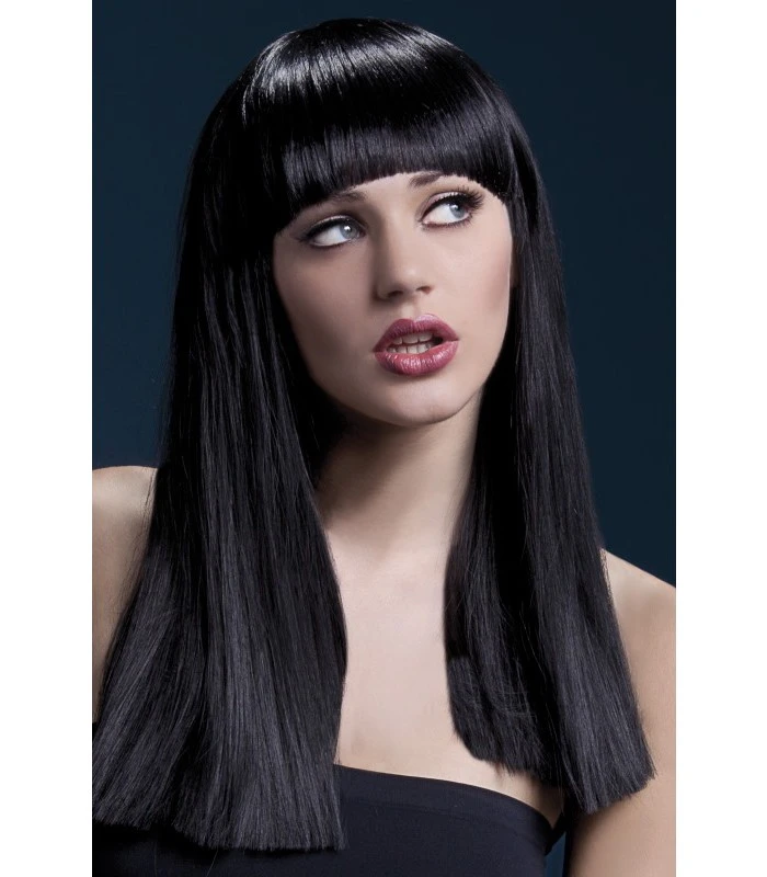 PARRUCCA ALEXIA NERA , LUNGA LISCIA CON FRANGIA .. PARRUCCA EFFETTO NATURALE , RESISTENTE AL CALORE E ALL’ACQUA ..