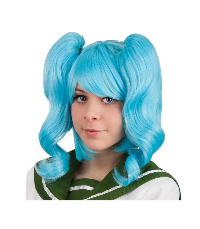 parrucca azzurra con codini removibili effetto naturale con calotta regolabile e messa in piega personalizzata .. adatta per i cosplay per i travestimenti manga e per le fiere di lucca comics e romics
