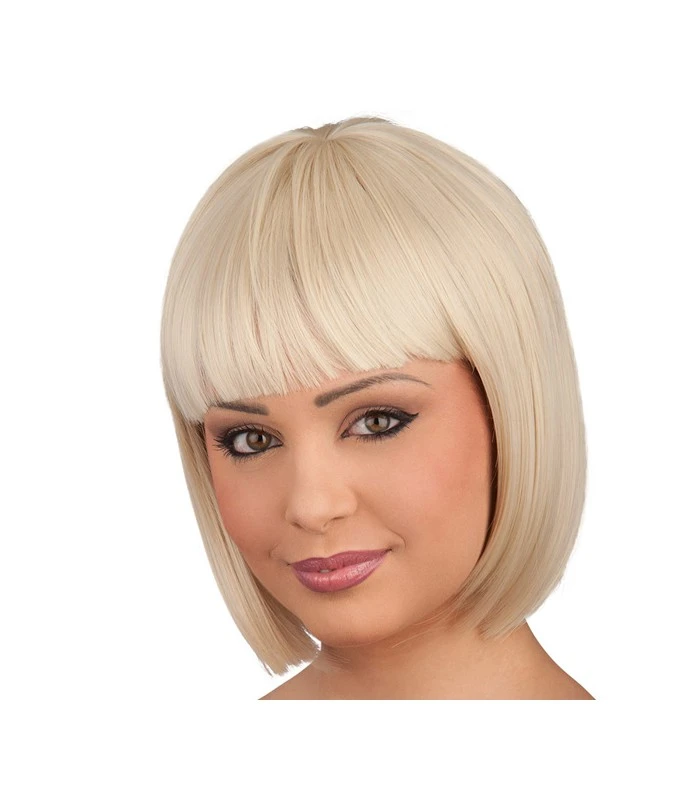 parrucca caschetto biondo effetto naturale con messa in piega personalizzabile e calotta regolabile adatta per travestimenti per feste a tema e per quelle di carnevale .. per un look alternativo ..