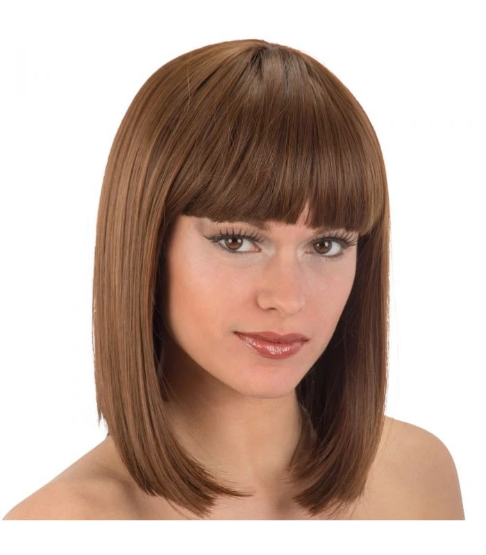 Parrucca castana con caschetto lungo ( effetto naturale ), per un look alla moda.