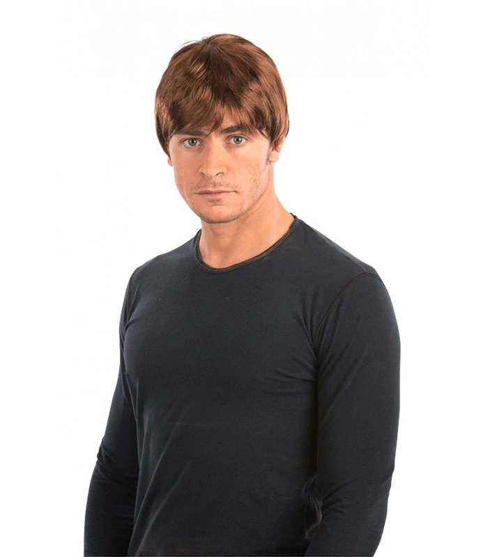 PARRUCCA CASTANA CORTA CON CIUFFO , PARRUCCA ADATAT PER FESTE A TEMA E PER TRAVESTIMENTI DI CARNEVALE , DISPONIBILE IN TAGLIA UNICA DA ADULTO UNISEX ..
