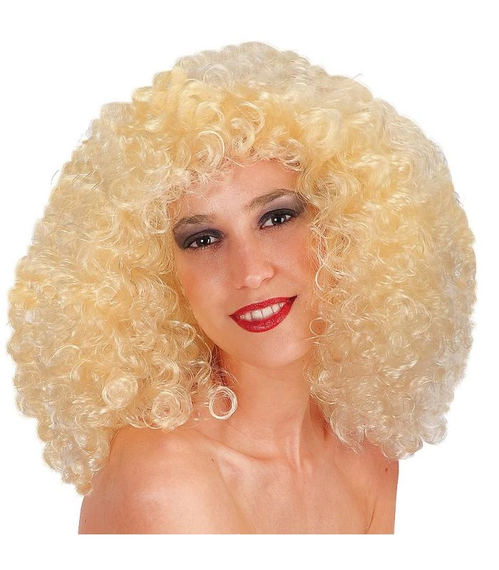 Parrucca Edy bionda, per un look dei bellissimi anni ’80. Indossala per un tuffo nel passato. Adatta per feste in maschera e travestimenti generici.