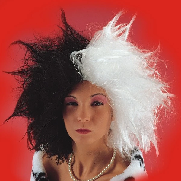 Parrucca da Crudelia, il personaggio cattivo del capolavoro La carica dei 101! Una riproduzione fedele della pettinatura e colore di capelli della crudele Dumon, che potete acquistare a prezzo esclusivo da sito.