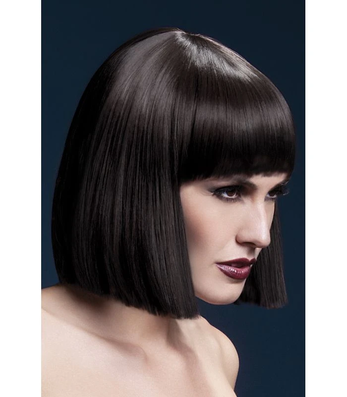 PARRUCCA LOLA , CORTA MARRONE SCURA CON FRANGIA , PARRUCCA EFFETTO NATURALE PER ADULTI , SISTEMABILE CON PIASTRA O PHONE .. ADATTA PER OGNI FESTA DI CARNEVALE E TRAVESTIMENTI VARI