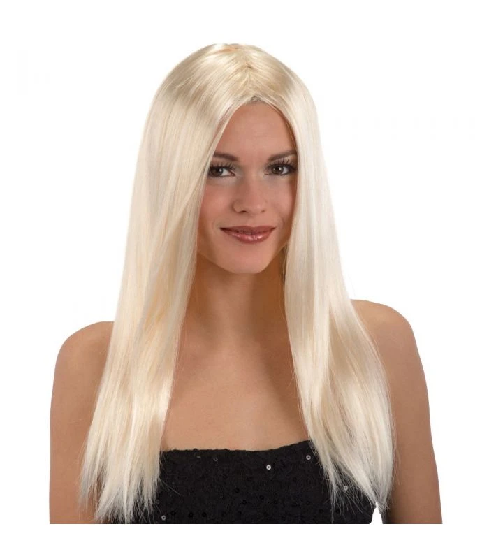 Parrucca lunga liscia bionda per festa in maschera e ogni tipo di travestimento.