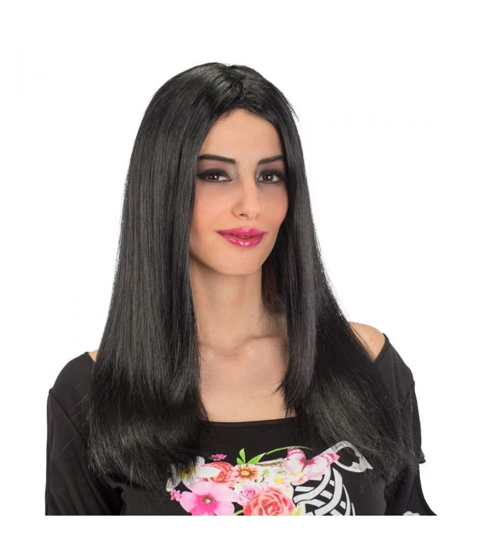 Parrucca lunga liscia nera, per Carnevale, Halloween ed ogni tipo di travestimento.